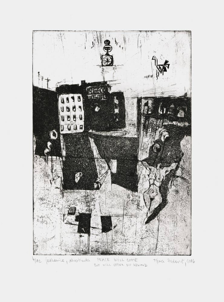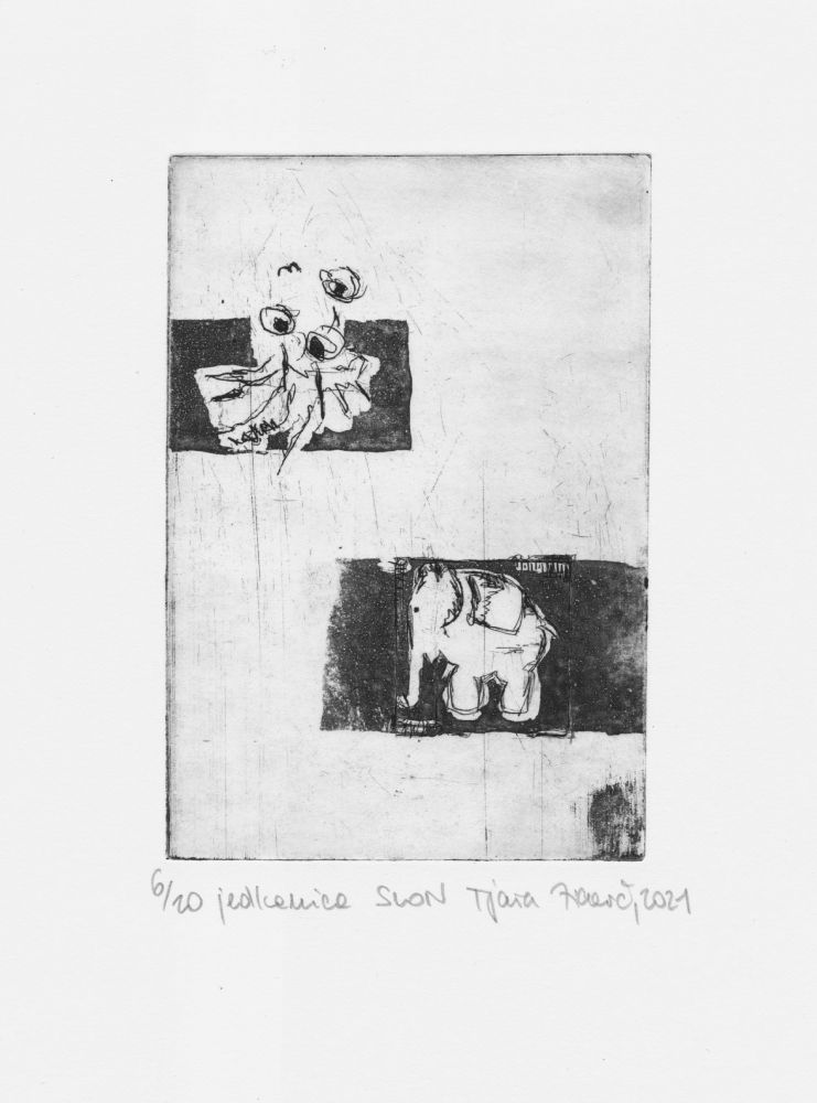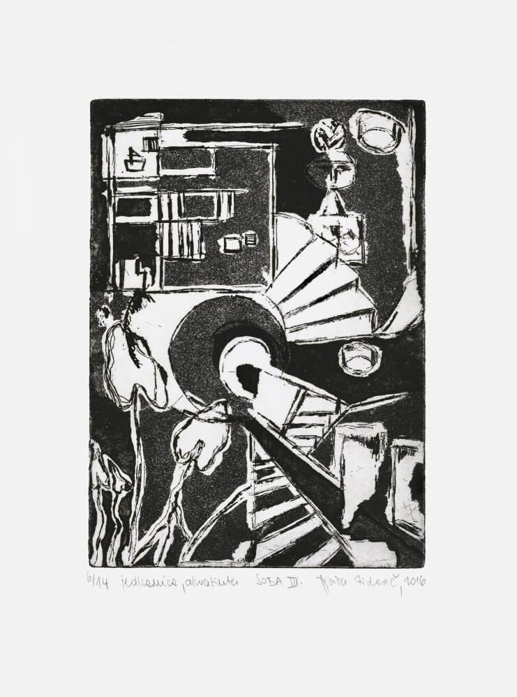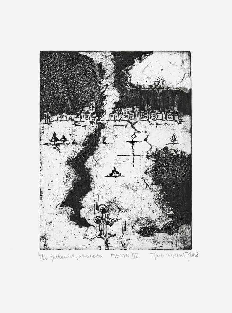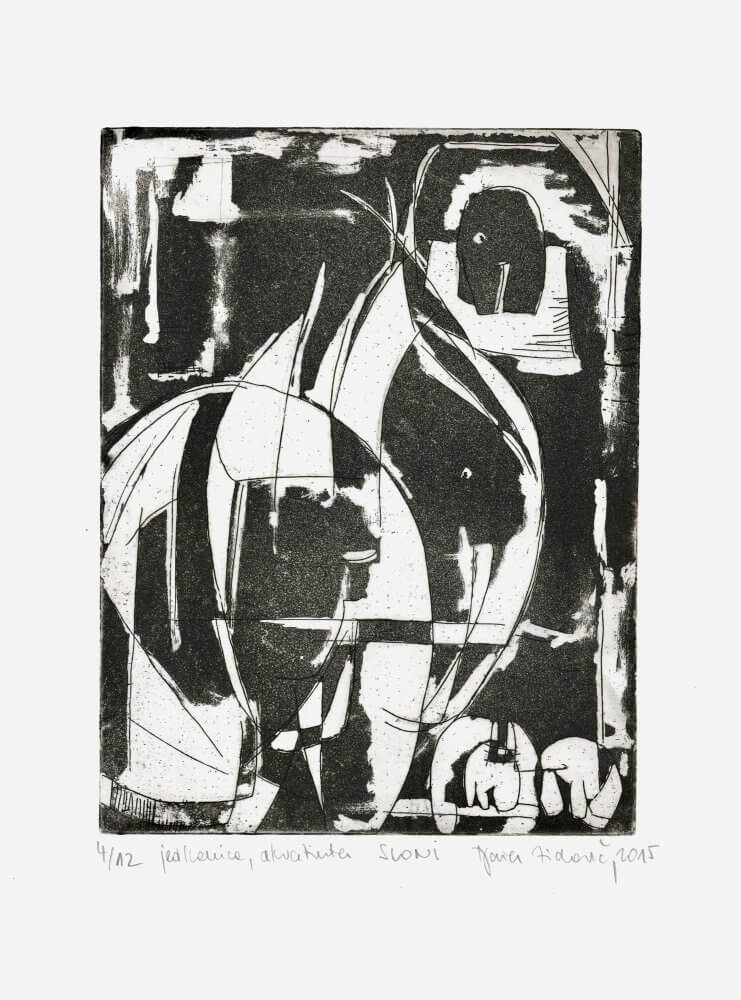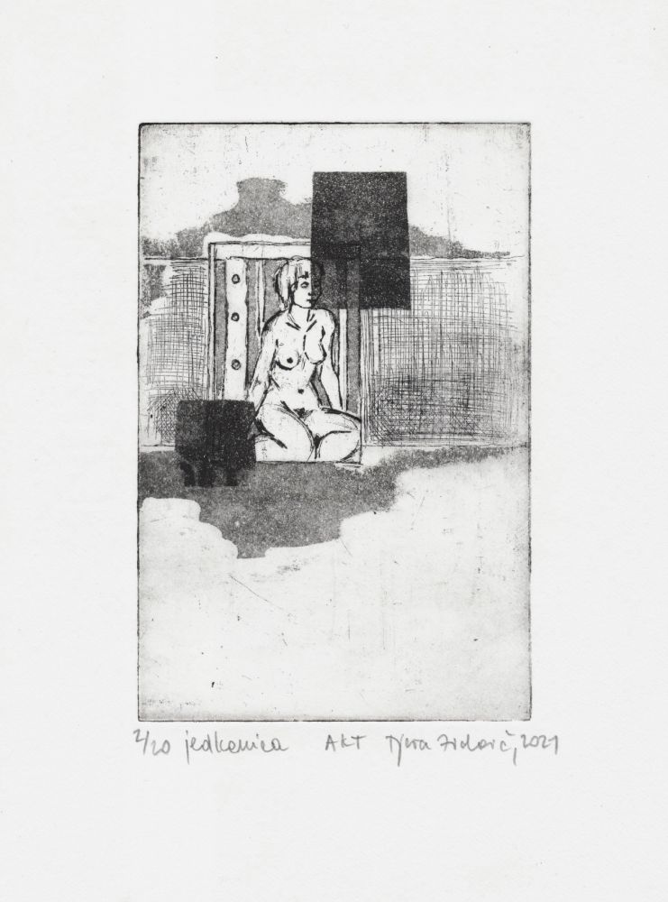 MESTO I. Jedkanica, akvatinta, 2015, 31 x 25 cm Cena brez okvirja: 55,00 EUR Cena z okvirjem: 70,00 EUR MESTO III. Jedkanica, akvatinta, 2015, 31 x 25 cm Cena brez okvirja: 60,00 EUR Cena z okvirjem: 75,00 EUR MESTO II. Jedkanica, rezervaž, 2016, 31 x 25 cm Cena brez okvirja: 55,00 EUR Cena z okvirjem: 70,00 EUR PEACE WILL COME BUT WILL OFFER NO REWARD Jedkanica, akvatinta, 2016, 50 x 35 cm Cena brez okvirja: 70,00 EUR Cena z okvirjem: 90,00 EUR HALKIDIKI Jedkanica, akvatinta, 2017, 50 x 35 cm Cena brez okvirja: 70,00 EUR Cena z okvirjem: 90,00 EUR AKT Jedkanica, akvatinta, 2016, 50 x 35 cm Cena brez okvirja: 65,00 EUR Cena z okvirjem: 85,00 EUR SOBA III. Jedkanica, akvatinta, 2016, 31 x 25 cm Cena brez okvirja: 50,00 EUR Cena z okvirjem: 65,00 EUR KRAJINA Jedkanica, 2016, 31 x 25 cm Cena brez okvirja: 55,00 EUR Cena z okvirjem: 70,00 EUR SLONI Jedkanica, akvatinta, 2015, 31 x 25 cm Cena brez okvirja: 55,00 EUR Cena z okvirjem: 70,00 EUR SOBA II. Linorez, 2018, 35 x 25 cm Cena brez okvirja: 55,00 EUR Cena z okvirjem: 70,00 EUR BANGKOK II. Linorez, 2018, 35 x 25 cm Cena brez okvirja: 55,00 EUR Cena z okvirjem: 70,00 EUR BANGKOK I. Linorez, 2018, 35 x 25 cm Cena brez okvirja: 55,00 EUR Cena z okvirjem: 70,00 EUR PIRAN I. Jedkanica, 2019, 25 x 19 cm Cena brez okvirja: 35,00 EUR Cena z okvirjem: 45,00 EUR PIRAN II. Jedkanica, 2019, 25 x 19 cm Cena brez okvirja: 35,00 EUR Cena z okvirjem: 45,00 EUR PIRAN III. Jedkanica, akvatinta, 2019, 25 x 19 cm Cena brez okvirja: 35,00 EUR Cena z okvirjem: 45,00 EUR SLON Jedkanica, akvatinta, 2021, 25 x 19 cmCena brez okvirja: 35,00 EURCena z okvirjem: 45,00 EUR AKT Jedkanica, akvatinta, 2021, 25 x 19 cmCena brez okvirja: 35,00 EURCena z okvirjem: 45,00 EUR IGRAČE Jedkanica, akvatinta, 2021, 25 x 19 cmCena brez okvirja: 35,00 EURCena z okvirjem: 45,00 EUR OKNA III. Lesorez, 2014, 35 x 25 cm Cena brez okvirja: 50,00 EUR Cena z okvirjem: 65,00 EUR Za nakup grafik pošljite sporočilo prek podstrani Kontakt
